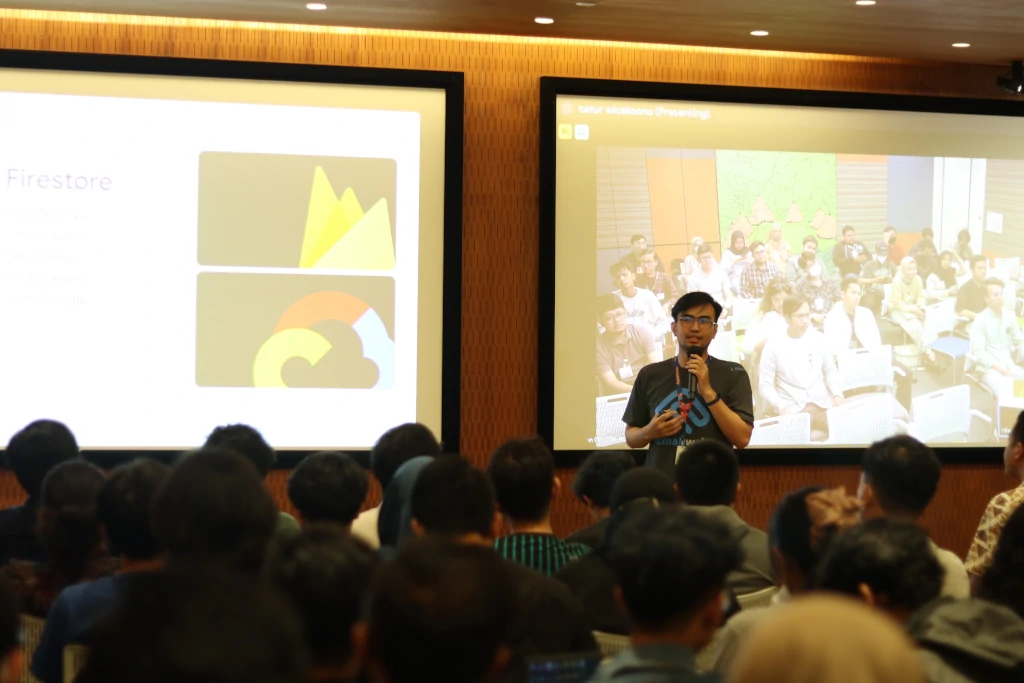 Menunjukkan dukungan yang kuat, Rumahweb, yang diwakili oleh Catur Wicaksono, Pengembang di Rumahweb, tidak hanya menyumbangkan dukungan keuangan tetapi juga berbagi wawasan berharga mengenai Cloud Firestore dan fitur pemulihan yang dirancang untuk membantu para pengembang dalam upaya pengembangan aplikasi.