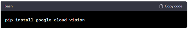 Gunakan terminal atau prompt perintah untuk menginstal library Google Cloud Vision untuk Python dengan menjalankan perintah berikut: