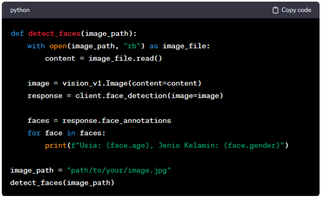 Dalam skrip Python Anda, impor library Vision dan atur kunci API untuk otentikasi. Pastikan untuk menyimpan kunci API dengan aman dan jangan membagikannya secara publik.